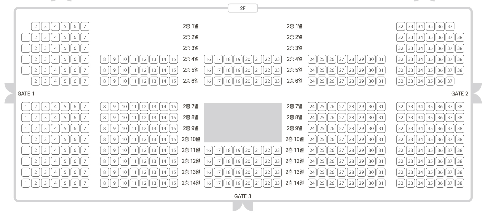 권장 범위: 2층 1~3열 / 14번~26번(중앙)